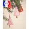 Clochette Sapin de Noël Rose aux motifs nordiques en cuir d'agneau peint pour Sapin rose pale