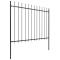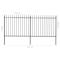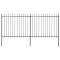 Clôture de jardin avec dessus en forme de lance en acier 359 x 150 cm NoirCréez une clôture élégante autour de votre jardin, maison ou allée avec notre clôture de jardin ! Notre clôture de jardin décorative en acier, composée de 2 panneaux de clôture et de 3 poteaux, a une longueur totale de 3,4 mètres. Elle constituera une barrière périmétrique robuste, sécuritaire et sans entretien pour votre jardin, maison ou propriété commerciale. Avec des barres verticales surmontées de pointes de lance et de solides renforts horizontaux qui renforcent le cadre, notre clôture de jardin offre un haut degré de sécurité. Fabriquée en acier enduit de poudre, la clôture extérieure est extrêmement stable, robuste et durable. Grâce au matériel de montage fourni, la clôture de jardin est facile à assembler. Remarque : Vous pouvez acheter plus de jeux pour faire la clôture aussi longue que vous le souhaitez. ,