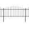 Clôture de jardin à dessus en lance Acier (0,5-0,75)x11,9m NoirCréez une barrière de sécurité autour de votre propriété avec notre clôture de jardin haut de gamme ! Cette clôture de jardin en acier de haute qualité, composée de 7 panneaux de clôture et de 8 poteaux, a une longueur totale de 11,9 mètre. Elle constituera une barrière de périmètre solide, sûre et sans entretien pour votre jardin, maison ou entreprise. Fabriquée en acier robuste, la clôture est extrêmement stable, solide et durable. De plus, grâce à ses barres verticales surmontées d'extrémités de lance et à son renfort horizontal résistant qui renforce le cadre, notre clôture de jardin offrira un degré élevé d'intimité et de sécurité. Le panneau de clôture est facile à assembler. ,