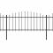 Clôture de jardin à dessus en lance Acier (0,5-0,75)x11,9m NoirCréez une barrière de sécurité autour de votre propriété avec notre clôture de jardin haut de gamme ! Cette clôture de jardin en acier de haute qualité, composée de 7 panneaux de clôture et de 8 poteaux, a une longueur totale de 11,9 mètre. Elle constituera une barrière de périmètre solide, sûre et sans entretien pour votre jardin, maison ou entreprise. Fabriquée en acier robuste, la clôture est extrêmement stable, solide et durable. De plus, grâce à ses barres verticales surmontées d'extrémités de lance et à son renfort horizontal résistant qui renforce le cadre, notre clôture de jardin offrira un degré élevé d'intimité et de sécurité. Le panneau de clôture est facile à assembler.