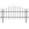 Clôture de jardin avec dessus en forme de lance en acier 1070 x 100 cm NoirCréez une barrière de sécurité autour de votre propriété avec notre clôture de jardin haut de gamme ! Cette clôture de jardin en acier de haute qualité, composée de 6 panneaux de clôture et de 7 poteaux, a une longueur totale de 10,2 mètre. Elle constituera une barrière de périmètre solide, sûre et sans entretien pour votre jardin, maison ou entreprise. Fabriquée en acier robuste, la clôture est extrêmement stable, solide et durable. De plus, grâce à ses barres verticales surmontées d'extrémités de lance et à son renfort horizontal résistant qui renforce le cadre, notre clôture de jardin offrira un degré élevé d'intimité et de sécurité. Le panneau de clôture est facile à assembler. ,