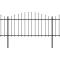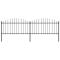 Clôture de jardin avec dessus en forme de lance en acier 359 x 150 cm NoirCréez une barrière de sécurité autour de votre propriété avec notre clôture de jardin haut de gamme ! Cette clôture de jardin en acier de haute qualité, composée de 2 panneaux de clôture et de 3 poteaux, a une longueur totale de 3,4 mètre. Elle constituera une barrière de périmètre solide, sûre et sans entretien pour votre jardin, maison ou entreprise. Fabriquée en acier robuste, la clôture est extrêmement stable, solide et durable. De plus, grâce à ses barres verticales surmontées d'extrémités de lance et à son renfort horizontal résistant qui renforce le cadre, notre clôture de jardin offrira un degré élevé d'intimité et de sécurité. Le panneau de clôture est facile à assembler. ,