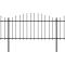 Clôture de jardin avec dessus en forme de lance en acier 537 x 150 cm NoirCréez une barrière de sécurité autour de votre propriété avec notre clôture de jardin haut de gamme ! Cette clôture de jardin en acier de haute qualité, composée de 3 panneaux de clôture et de 4 poteaux, a une longueur totale de 5,1 mètres. Elle constituera une barrière de périmètre solide, sûre et sans entretien pour votre jardin, maison ou propriété d'entreprise. Fabriquée en acier robuste, la clôture est extrêmement stable, solide et durable. De plus, grâce à ses barres verticales surmontées d'extrémités de lance et à son renfort horizontal résistant qui renforce le cadre, notre clôture de jardin offrira un degré élevé d'intimité et de sécurité. Le panneau de clôture est facile à assembler. ,