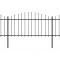 Clôture de jardin à dessus en lance Acier (1,25-1,5)x8,5 m NoirCréez une barrière de sécurité autour de votre propriété avec notre clôture de jardin haut de gamme ! Cette clôture de jardin en acier de haute qualité, composée de 5 panneaux de clôture et de 6 poteaux, a une longueur totale de 8,5 mètre. Elle constituera une barrière de périmètre solide, sûre et sans entretien pour votre jardin, maison ou entreprise. Fabriquée en acier robuste, la clôture est extrêmement stable, solide et durable. De plus, grâce à ses barres verticales surmontées d'extrémités de lance et à son renfort horizontal résistant qui renforce le cadre, notre clôture de jardin offrira un degré élevé d'intimité et de sécurité. Le panneau de clôture est facile à assembler.