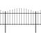 Clôture de jardin avec dessus en forme de lance en acier 892,5 x 150 cm NoirCréez une barrière de sécurité autour de votre propriété avec notre clôture de jardin haut de gamme ! Cette clôture de jardin en acier de haute qualité, composée de 5 panneaux de clôture et de 6 poteaux, a une longueur totale de 8,5 mètre. Elle constituera une barrière de périmètre solide, sûre et sans entretien pour votre jardin, maison ou entreprise. Fabriquée en acier robuste, la clôture est extrêmement stable, solide et durable. De plus, grâce à ses barres verticales surmontées d'extrémités de lance et à son renfort horizontal résistant qui renforce le cadre, notre clôture de jardin offrira un degré élevé d'intimité et de sécurité. Le panneau de clôture est facile à assembler. ,