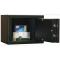 Pour une sécurité accrue, des trous sont prévus pour une fixation au sol et au mur, et un jeu de vis avec chevilles est fourni, permettant une installation stable et dissuasive. Le revêtement en peinture époxy chauffée à 200 °C confère au coffre une haute résistance à l'usure et une finition élégante en noir. La porte est également équipée d'un système anti-levier, renforçant la sécurité de l'ensemble.