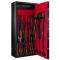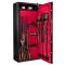 L'intérieur du coffre est entièrement revêtu d'un luxueux velours rouge, protégeant vos armes des rayures et ajoutant une touche d'élégance. Un râtelier en bois gainé de mousse peut accueillir 11 armes longues dans le fond du coffre, tandis que trois armes supplémentaires peuvent être suspendues sur la porte, optimisant ainsi l'espace de rangement.