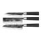 Le coffret Samura Super 5 réunit trois couteaux conçus pour répondre aux besoins des amateurs de cuisine exigeants. Chaque lame est fabriquée en acier VG-10, reconnu pour sa robustesse et sa capacité à conserver un tranchant exceptionnel. Le design Damas à cinq couches confère aux lames une esthétique unique et raffinée, tout en améliorant leur résistance à la corrosion.