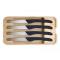 Coffret 4 couteaux steak TB AUGUSTE 22,5 cm lame dentée pleine soie acier inox mat manche ABS noir