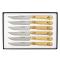 Coffret 6 couteaux table NONTRON, lame yatagan acier inox T12 satiné, 21 cm, manche rond en buis pyrogravé.