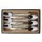 Coffret 6 cuillers à café par Roger Orfèvre, 15 cm, tout inox, décors « Maison ».