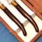 Les manches sont en bois avec cloutage en chapelet, mitres en laiton.