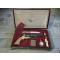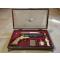 Le tout est soigneusement rangé dans un élégant coffret ancien en bois, gainé façon cuir rouge sang, intérieur bordeaux, orné de :