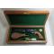 Vend coffret pour Colt 1851,1860...... Remington 1858. Matière mdf plaqué merisier extérieur et intérieur chêne teinté couleur noyer vernis satiné intérieur velours vert (attention les accessoires et les armes ne sont pas vendu)