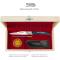 Le coffret en bois comprend une boîte de graisse pour entretenir la lame, un fusil pour affûter le couteau et un étui en croûte de cuir (référence 2060) pour le protéger et le transporter plus facilement. Un très beau cadeau !
