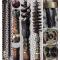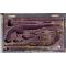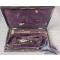 Extérieur en placage de palissandre et avec ornementations en laiton. Intérieur gainé en velours [mauve/violet] avec un compartiment à tiroir. Sans [clé/clef], avec accessoires (un maillet, une baguette de chargement avec un embout pousse-balle, une baguette de nettoyage avec un embout porte-chiffon combinable avec une brosse, un grattoir et un tire-balle, un tournevis, un moule à balle ronde avec coupe-jet de calibre de 12,2 mm environ, une poire à poudre en cuivre, et, un huilier) et sans pistolets (se reporter à la photo pour les dimensions).