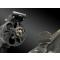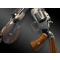 Plaquettes de crosse en bois choisi. Le bâti est équipé d’une pièce de forme destinée à recevoir la crosse additionnelle.