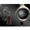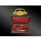 Le coffret en bois est recouvert de percaline noire, avec un monogramme au niveau de la poignée. L’intérieur est garni de feutre bordeaux et d’un tournevis.