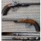 Avec un pistolet civil de tir à percussion. Belgique. XIXe siècle. Origine. Canon poinçonné « ELG » et marqué à lettres d'or « DAMAS TURC », platine non signée et stecher poinçonné, monture tamponnée et poinçonnée.