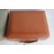 Coffret à bijoux de voyage en cuir grainé a décor de fleurs de lys avec house de protection et clef d'origine bon état, 1 fermeture éclair abîmée, voir photos
