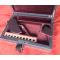 En bois de ginkgo teinté gris, charnières compas ,deux clés et serrure fonctionnelle, planchette pour 45 lc ou 44/40.