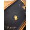 L'intérieur est garni d'une feutrine noire, sur la partie intérieure du couvercle, la feutrine laisse apparaître des traces de colle qui ont servies a fixer une étiquette