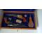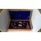 Vend coffret double Colt, matière mdf plaqué chêne extérieur et intérieur dessus dessous teinté chêne moyen vernis satiné. Intérieur feutrine bleu royal plus gravure laser hommage à Samuel colt. (Attention les armes et les accessoires ne sont pas à vendre)