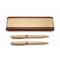Ce coffret se compose de deux stylos de bureau en bois naturel, soigneusement assortis, ainsi que d'un support en bois massif permettant de les présenter avec élégance sur un bureau. Les lignes épurées, les finitions dorées et la texture chaleureuse du bois confèrent à cet ensemble une allure à la fois professionnelle et authentique.