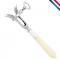 Le fer à gigot vous permet de fixer solidement l'os du gigot d'agneau pour le découper efficacement et en toute sécurité. Caractéristiques techniques "fer à gigot avec pince forgée et manche imitation corne" » Poids : 500 gr » Pince forgée en inox » Virole en métal argenté » Manche façon corne
