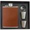 Coffret composé d'une flasque inox décoration simili cuir, avec 2 gobelets et 1 entonnoir inox. Présenté dans un coffret cadeau.