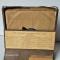 Coffret bois recouvert de papier noir, fermée par deux crochets qui fonctionnent mais le couvercle est à réparé