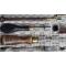 Intérieur gainé de feutre vert et compartimenté dont un à tiroir (deux cloisons décollées à l'une de leurs extrémités). Avec [clé/clef], avec divers accessoires (dont un moule à balle ogivale à simple cavité de calibre 11,8 mm, une baguette avec tire balle et pousse balle d'une longueur utile de 20,1 cm, un démonte cheminée de 5 mm, un tournevis à lame plate et un outil non identifié) et sans revolver.