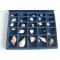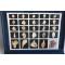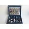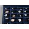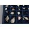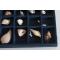 Coffret pédagogique de conchyliologie contenant une collection de 25 coquillages accompagnée d'une planche illustrée imprimée en couleurs indiquant les noms scientifiques (latins) des espèces représentées