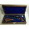Vend coffret pour Remington 1858 , matière mdf plaqué noyer ,teinté noyer moyen ,vernis satiné avec empreinte du remington 1858 ,poire à poudre et petite boîte d'amorce. Couvercle tapissier de velours bleu royal le bas tapissier de soie.(Attention les accessoires et les armes ne sont pas vendu)