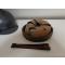 Repro. d'une coiffe en cuir patiné T58 + jugulaire en cuir patiné épaisseur 1mm , L. 600mm , l. 14mm , boucle fer et rivet laiton vieilli pour casque Adrian Mle. 1915 WW1