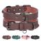 Collier cuir doublé veau pour chien CHÂTAIGNE. 35/50 cm