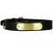 Collier en cuir noir avec une plaque en laiton sur laquelle on inscrit le texte de vote choix (1 ou 2 lignes idéalement - au besoin on peut en ajouter une 3e mais les caractères seront plus petits).