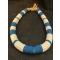 Très beau collier composé d'un boudin en peau de cerf terminé par 2 lacets en peau de. Entièrement perlé en blanc et powder blue, comme on peut voir sur les dessins de catlin et bodmer.