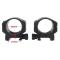 Colliers bas 30 mm usinés en aluminium aéronautique avec finition noir mat, spécialement conçus pour montage sur rail Picatinny. Triple fixation (3 duos de vis -- 6 vis par anneau), goupille d'arrêt et attache rapide garantissent une tenue solide, un alignement précis et un profil bas (6 mm).