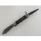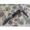 USN « Giant Jack » Knife. Ce grand couteau pliant à 2 lames faisait partie du kit de survie des pilotes US à partir de 1943. Le modèle pour l’US Navy, le type 1, possédait un anneau pour une dragonne et il était fourni avec une petite housse en toile de couleur kaki avec marquage USN, mais il était bien souvent porté directement dans les poches de la combinaison de vol. Le modèle pour l’USAAF (United States Army Air Force), le type 2, n’avait pas d’anneau et il était prévu être porté directement dans une poche du gilet de survie adopté en 1943 (USAAF Survival Vest C-1). Le fabricant d’origine est Colonial à Providence, Rhodes Island et lui seul fabriquera le type 1 pour l’US Navy. En plus de Colonial, United Mfg à Grand Rapid, Michigan produira aussi le type 2 pour l’USAAF. On peut rencontrer ces couteaux avec sur la lame le marquage Colonial PROV. R.I. ou UNITED G.R. MICH. ou sans aucun marquage. Cet exemplaire est un Colonial de type 1 destiné aux pilotes de l’US Navy, bien plus rare que le modèle USAAF. Il est en état d’usage et les photos participent à sa description. Les plaquettes en plastique sont en bon état, l’extrémité de la lame scie est cassée et il en manque 25 mm. La lame principale est en très bon état, pas d’oxydation, pas de choc, pas de dérapage d’affutage, encore 80% de bronzage. Le marquage sur la lame est bien net COLONIAL PROV. R.I. Le système de verrouillage fonctionne bien. Les photos ne rendent pas ses dimensions, mais bien que pliant, il est grand et massif. Pour infos, en proportion on rencontre 1 modèle USN pour 9 modèles USAAF.