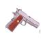 Cette réplique de Colt 1911 MKIV Series 70 sous licence officielle Colt par Cybergun est produite par KWC. Ce modèle custom dispose d'un corps inférieur et d'une culasse en métal pour un réalisme plus poussé ainsi que d'un rail picatinny inférieur pour l'ajout d'accessoires comme une lampe ou un laser. La finition apporte une vraie matière au toucher, très différente du toucher métal de certaines culasses.