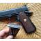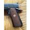 Arme bronzé bleu, pédale de sécurité de poignée couleur bordeau, plaquettes en bois quadrillées.
