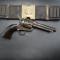 Sur le plan mécanique, ce revolver est en très bon état de fonctionnement, sans entrefer. Les quatre clics caractéristiques Colt sont bien marqués, l’armement est franc, le départ souple, et l’indexation parfaite, avec seulement un léger jeu d’usage. Le canon de 5 pouces ½, chambré en .45 Long Colt, présente un intérieur encore brillant, doté de rayures nettes et profondes, garantissant une précision toujours remarquable et attestant d’un soin constant apporté à l’arme au fil du temps. L’ensemble est complété par une crosse en bois, portant un marquage non identifié, mais parfaitement homogène avec l’arme.