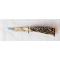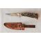 Interessante coltello con impugnatura in corno di cervo realizzato da artigiani tedeschi di Solingen durante gli anni ’50-’60. Sul verso della lama, realizzata in acciaio, è posta la marcatura “MADE IN GERMANY” mentre su quello del fodero, realizzato in cuoio, sono poste le lettere “V.” e “C.”, verosimilmente, da identificarsi, con le iniziali del possessore del coltello. Lo stesso si presenta in “ECCELLENTI” condizioni di conservazione senza ne difetto, rottura e/o mancanza alcuna. Misure: lunghezza complessiva = 175 mm; lunghezza coltello = 160 mm; lunghezza lama = 77 mm.