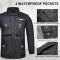 Plusieurs poches : il y a 6 poches imperméables sur le manteau de pluie, 2 poches sur la poitrine et 2 poches latérales avec fermeture éclair, 2 poches sur la poitrine intérieure.