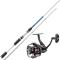 Ensemble canne + moulinet de marque Okuma. Matériel simple mais efficace, qui permet de pêcher le bar et les autres poissons de ce gabarit, depuis le bord de mer ou en bateau.