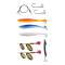 Combo Spinning Fast Attack de chez Abu Garcia, disponible en 2m10 et 2m40, fourni avec une boîte et des leurres.