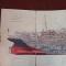 Dépliant de la représentation en coupe longitudinale du paquebot "Paris", laissant apparaitre tous les aménagements intérieurs du navire, et le détail des principales caractéristiques, dessin réalisé par Albert Sébille, dimensions déplié: 31 x 110 cm,
