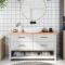 Comptoir de salle de bain marron 140x60x(2-4) cm bois traitéVous envisagez de rénover vos comptoirs chez vous ? Ce comptoir de salle de bain en bois est un choix parfait ! Construction durable : ce plan de travail de salle de bain est fabriqué en bois de chêne massif, un beau matériau naturel. Le bois de chêne a une couleur brun moyen et un grain dense, contribuant à son aspect unique. Grâce au design avec charnières, il peut être plié et rangé dans des espaces étroits. Applications polyvalentes : outre un plan de vasque de salle de bain, ce comptoir en bois peut être combiné avec différentes bases selon vos besoins. Il peut être utilisé comme étagère, dessus d'armoire, dessus de bureau, dessus de table, etc. Surface traitée : le dessus de salle de bain a été verni, il est donc prêt à l'emploi car une finition supplémentaire n'est pas nécessaire. Fait à la main avec un bord vivant : ce comptoir de meuble-lavabo de salle de bain est fabriqué à la main avec un bord vivant. Grâce à cela, les noeuds, les fissures, les formes légèrement incurvées et les tons de couleur font partie du bois de chêne, chaque pièce de comptoir en chêne a son propre caractère unique à afficher. La livraison est aléatoire. Bon à savoir : En tant que produit naturel, le bois peut présenter des noeuds et des imperfections que nous remplissons avec des garnitures noires pour garantir un aspect lisse. ,