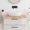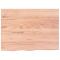 Comptoir de salle de bain marron 80x60x(2-6) cm bois traitéVous envisagez de rénover vos comptoirs chez vous ? Ce comptoir de salle de bain en bois est un choix parfait ! Construction durable : ce plan de travail de salle de bain est fabriqué en bois de chêne massif, un matériau naturel magnifique. Le bois de chêne a une couleur marron moyen et un grain dense, ce qui contribue à son aspect unique. Applications polyvalentes : outre un plan de vasque de salle de bain, ce comptoir en bois peut être combiné avec différentes bases selon vos besoins. Il peut être utilisé comme étagère, dessus d'armoire, dessus de bureau, dessus de table, etc. Surface traitée : le dessus de salle de bain a été verni, il est donc prêt à l'emploi car une finition supplémentaire n'est pas nécessaire. Fait à la main avec un bord vivant : ce comptoir de meuble-lavabo de salle de bain est fabriqué à la main avec un bord vivant. Grâce à cela, les noeuds, les fissures, les formes légèrement incurvées et les tons de couleur font partie du bois de chêne, chaque pièce de comptoir en chêne a son propre caractère unique à afficher. La livraison est aléatoire. Bon à savoir : En tant que produit naturel, le bois peut présenter des noeuds et des imperfections que nous remplissons avec des garnitures noires pour garantir un aspect lisse. ,
